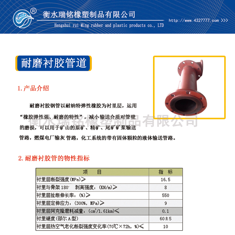 (2)耐磨襯膠管的規(guī)格(耐磨襯里膠厚度6mm/層)