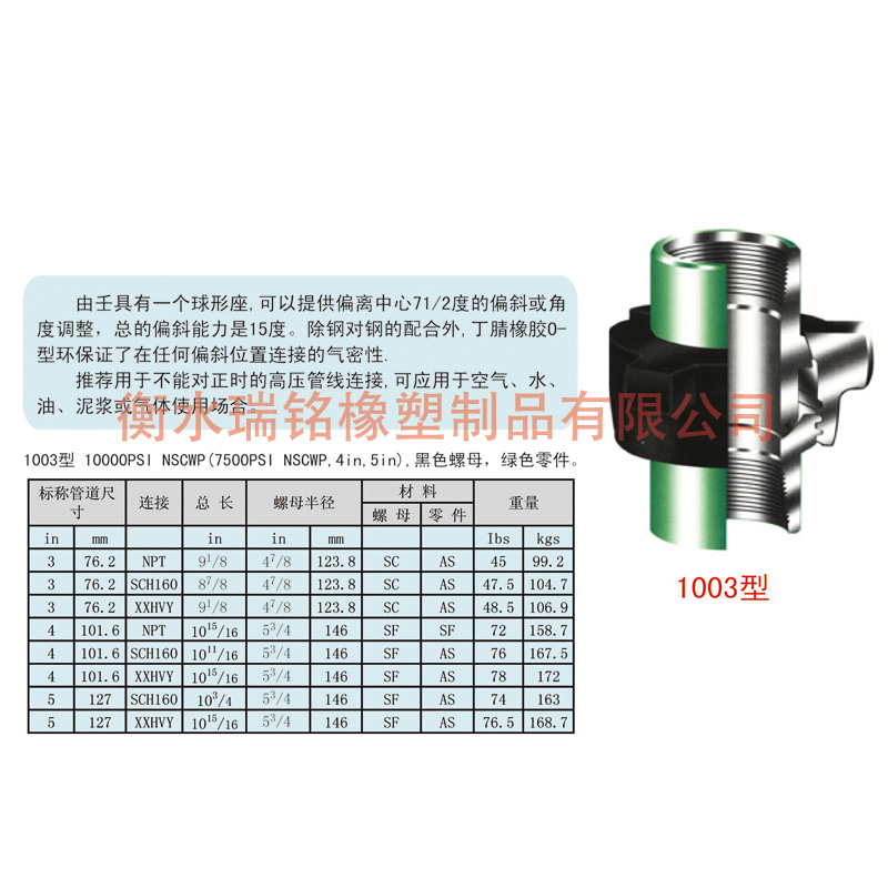 可靠的密封性:密封圈采用進口膠料壓制而成,極大地提高了承壓能力和密封性能,并使接頭處免遭腐蝕。密封形式依壓力和應用范圍而有所不同。